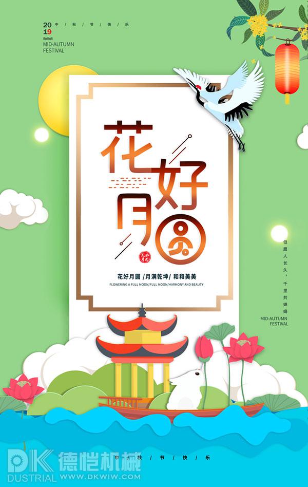 人間最美是金秋,五谷飄香豐收樂;一年最圓中秋月,桂樹玉兔伴嫦娥;人生最暖是團(tuán)圓,翹首盼望團(tuán)圓節(jié);最美季節(jié)賞圓月,快意人生幸福多。德愷機(jī)械全體員工祝大家中秋節(jié)日快樂!